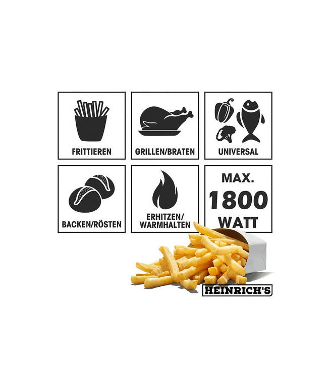 سرخ کن هنریچ 8205 مجهز به تایمر می باشد. همچنین دمای این سرخ کن را می توان بین 80 تا 200 درجه سانتی گراد تنظیم نمود. بنابرای می توان متناسب با ماده غذایی و نوع غذایی که می خواهیم پخت نماییم، هم زمان پخت و هم دمای پخت را تنظیم کنیم و همه این به لطف صفحه نمایش دیجیتال و کنترل پنل لمسی میسر شده است.